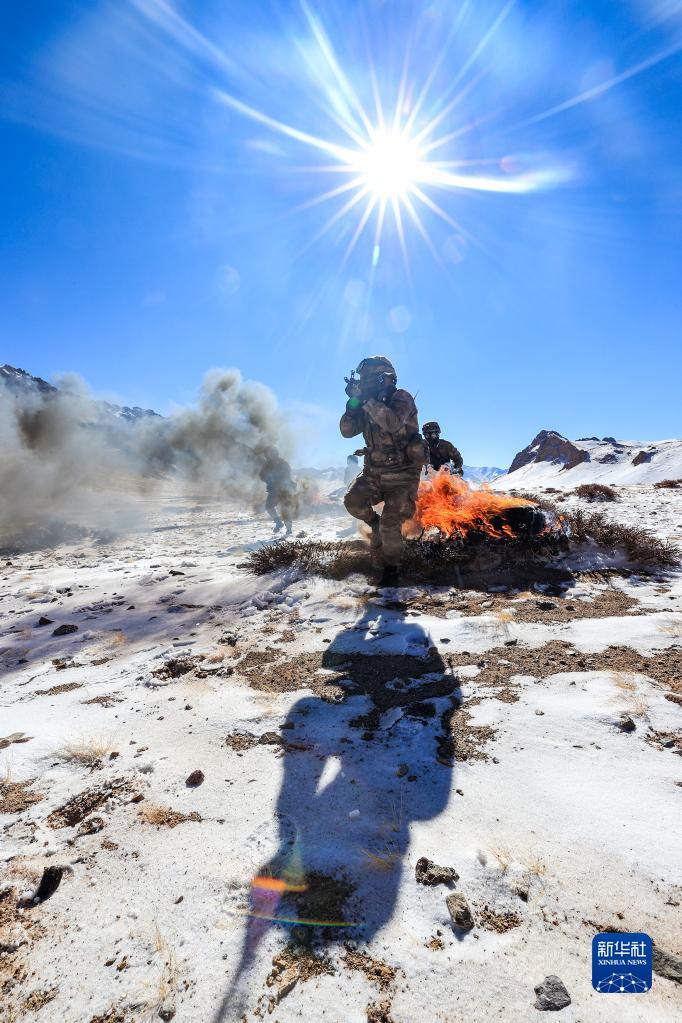 1月3日,駐守在西藏阿里高原的阿里軍分區某邊防團官兵在海拔5000多米的陌生地域進行戰術演練。