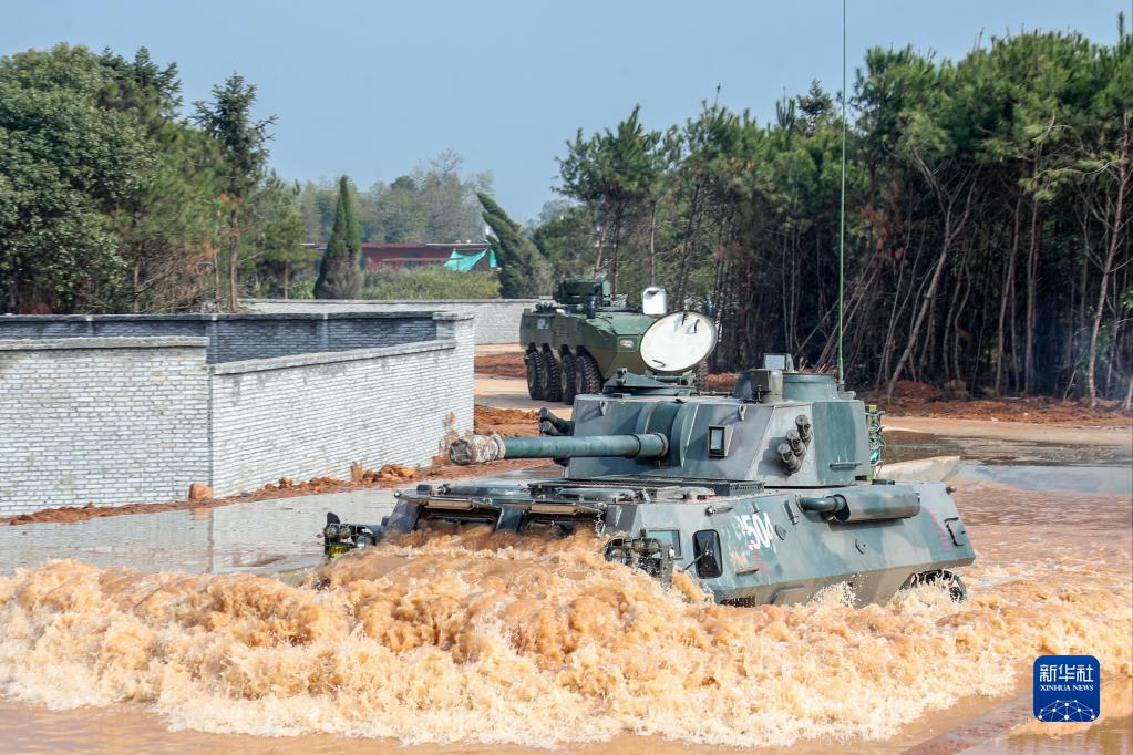 1月4日,陸軍第72集團(tuán)軍某旅火力二連組織輪式裝甲裝備進(jìn)行涉水駕駛訓(xùn)練。