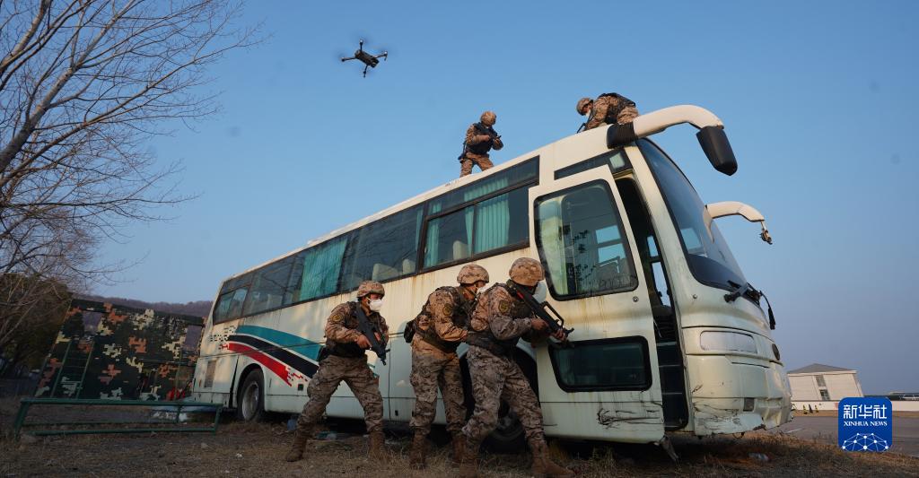 1月3日,武警安徽總隊蚌埠支隊組織特戰(zhàn)隊員開展公交車反劫持訓練。