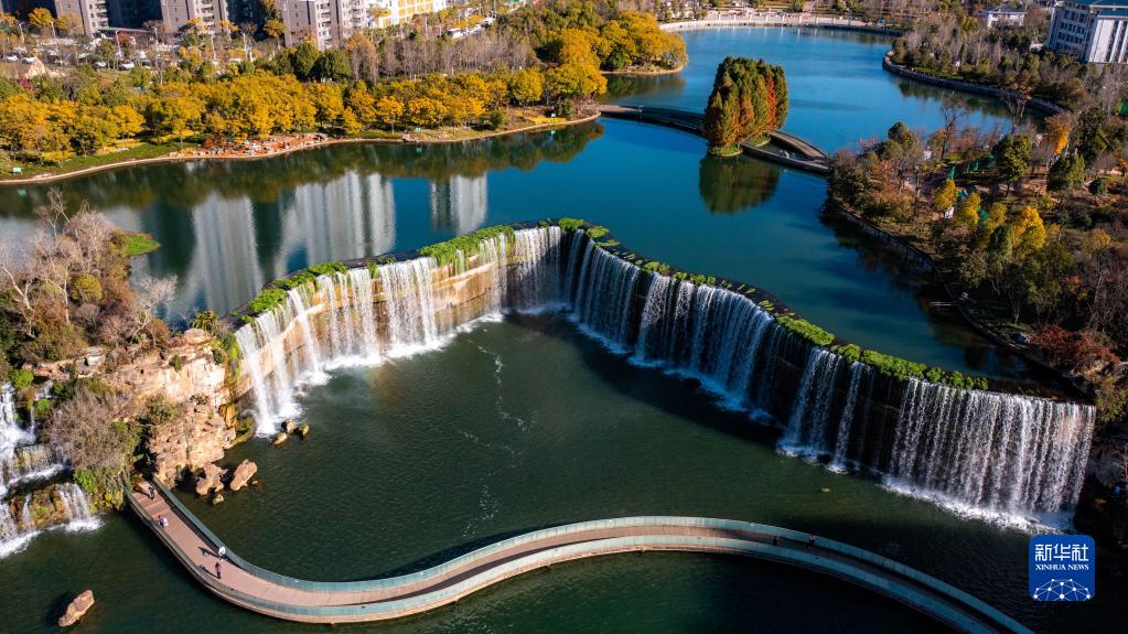 1月4日拍攝的昆明市瀑布公園一景(無人機(jī)照片)。