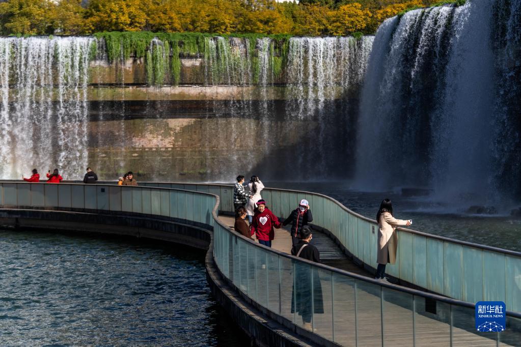 當日,云南昆明天氣晴好,游客來到位于昆明北部山水新區的昆明瀑布公園參觀游覽。公園內的人工瀑布落差約12.5米,寬幅約400米。