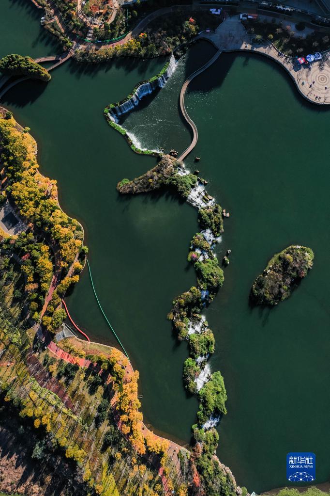 1月4日拍攝的昆明市瀑布公園一景(無人機照片)。