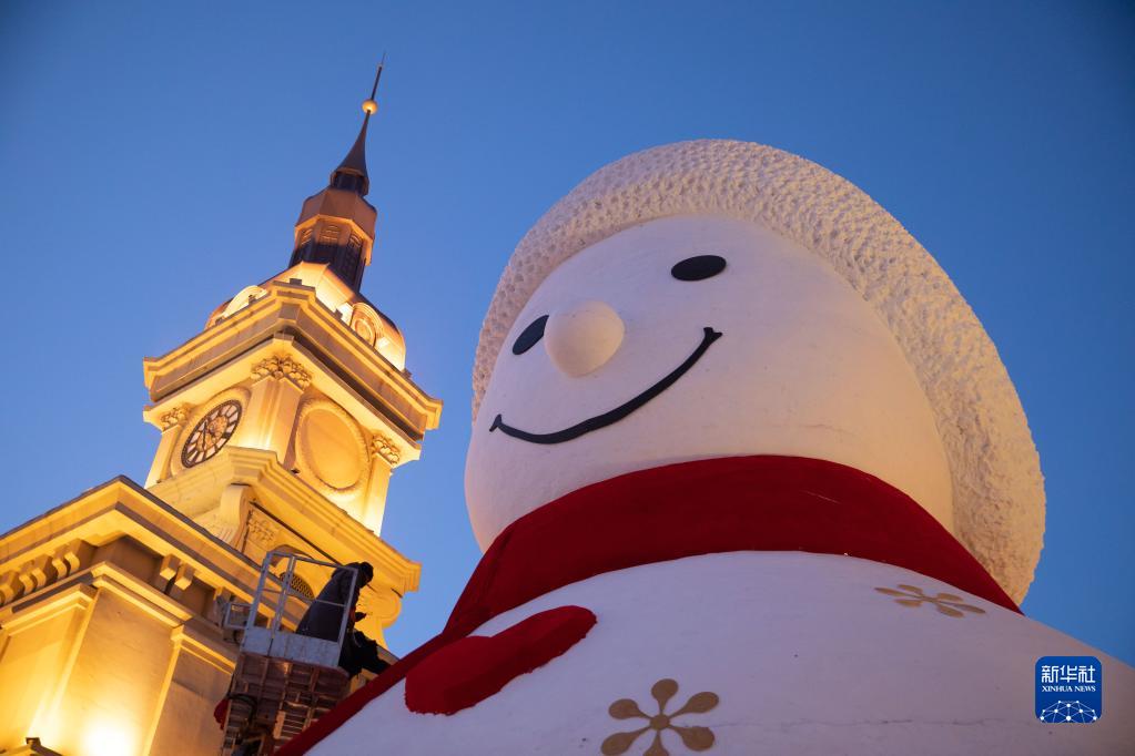 哈爾濱“超治愈”大雪人“回歸”松花江畔