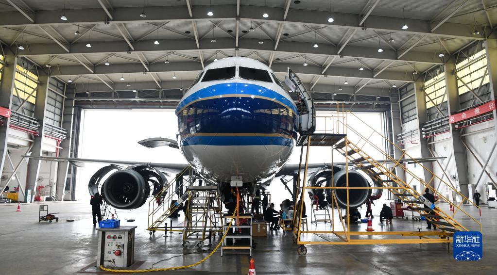1月5日,在位于海南省海口市的中國南方航空美蘭基地機(jī)庫,工程師在對飛機(jī)進(jìn)行檢修。