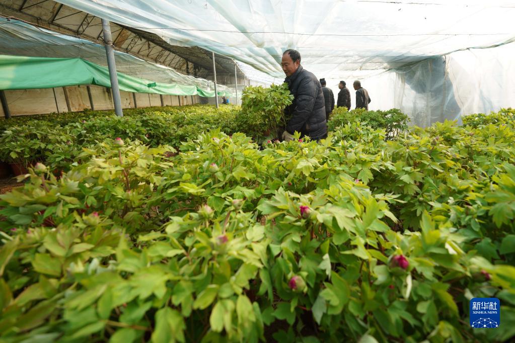 春節前夕,河北省柏鄉縣1000余畝錯季牡丹含苞待放,花農們忙著管護花卉,以滿足節日市場需求。柏鄉縣是“中國牡丹文化之鄉”,近年來,該縣持續推進農業產業結構調整,結合市場需求,采取“公司+專業合作社+農戶”的經營模式,引導農民發展錯季牡丹種植,有效拓寬種植戶的增收渠道。