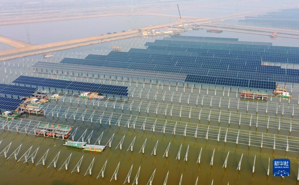 1月5日拍攝的華電海晶光伏項目B標段現場(無人機照片)。