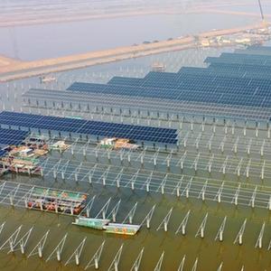 據了解,該項目總裝機容量為1000兆瓦,建成后將形成“水上光伏發電、水面蒸發制鹵、水下水產養殖”的立體循環產業模式。