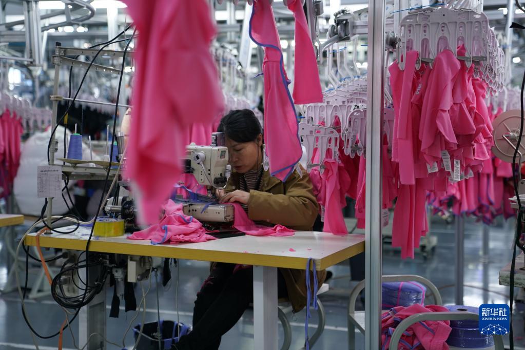 工人在位于南昌市青山湖區(qū)的南昌市眾拓制衣有限公司車(chē)間內(nèi)忙碌(1月4日攝)。
