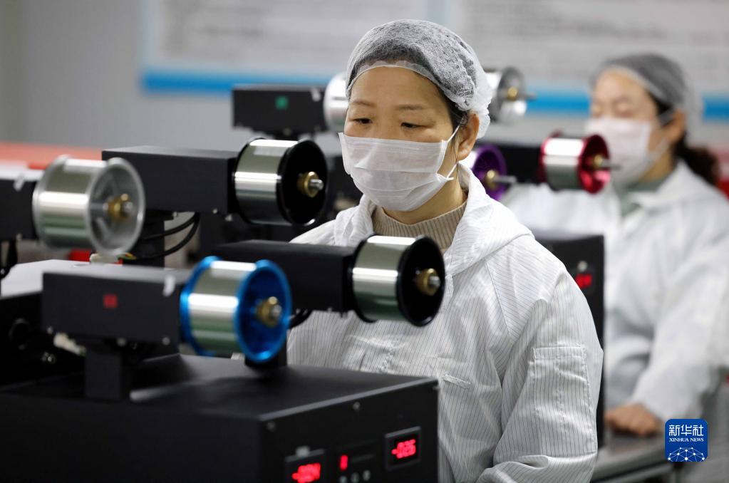 1月5日,在合肥市瑤海區(qū)長三角數(shù)字科技示范園,安徽華晶微電子材料科技有限公司的員工在集成電路鍵合絲生產(chǎn)線上作業(yè)。