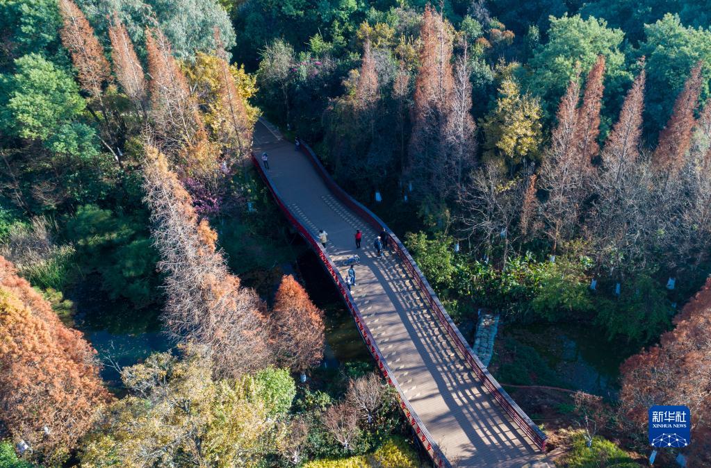近期,云南省昆明市海洪濕地公園的水杉迎來觀賞季,吸引不少游客前來游覽。昆明海洪濕地公園位于滇池北岸、盤龍江入湖口西側,是滇池的一道湖濱生態屏障。