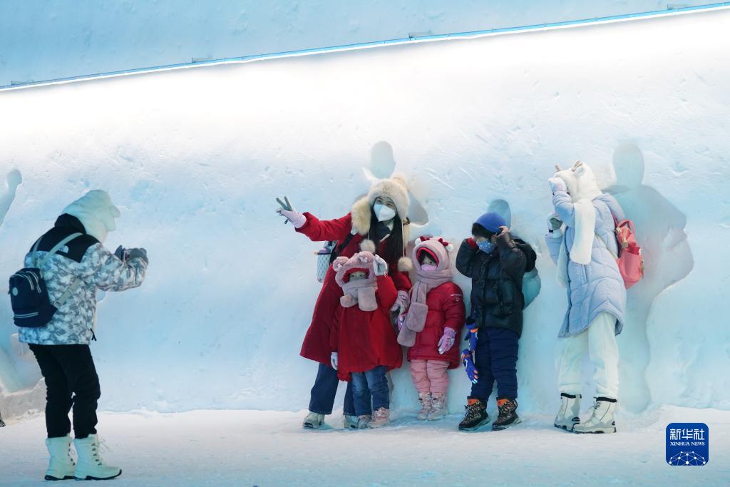 1月5日,游客在哈爾濱冰雪大世界園區游玩。
