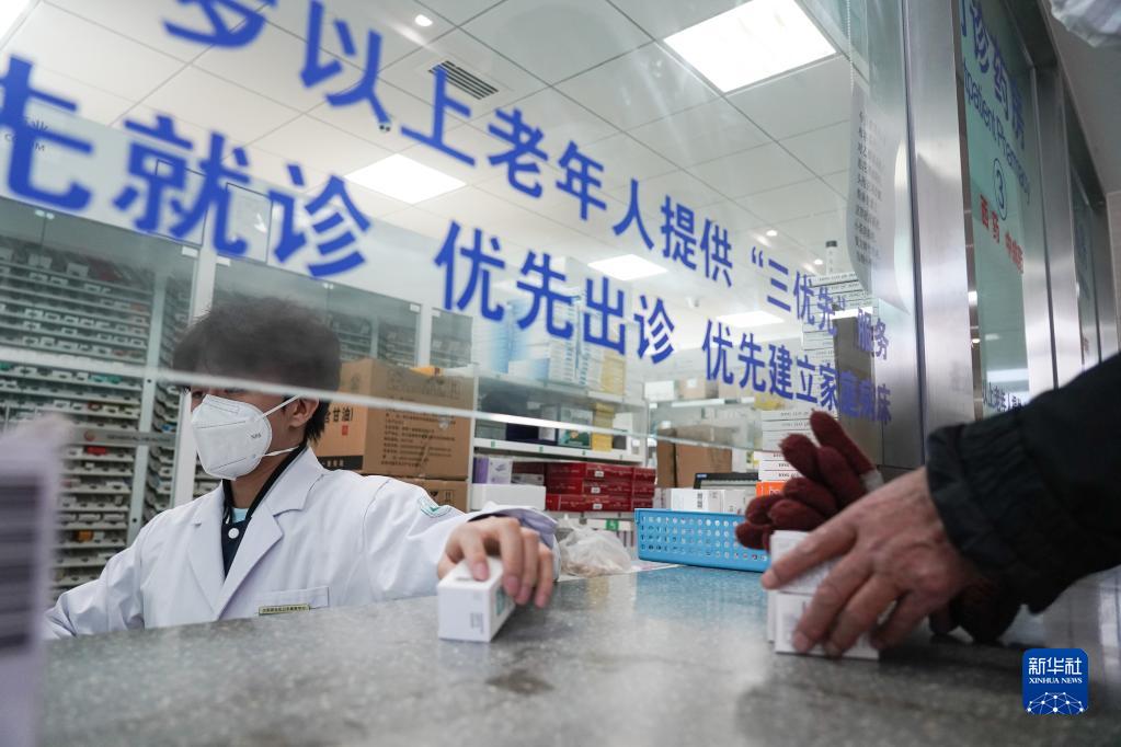 1月4日,太陽宮社區衛生服務中心藥房工作人員在給患者開藥。