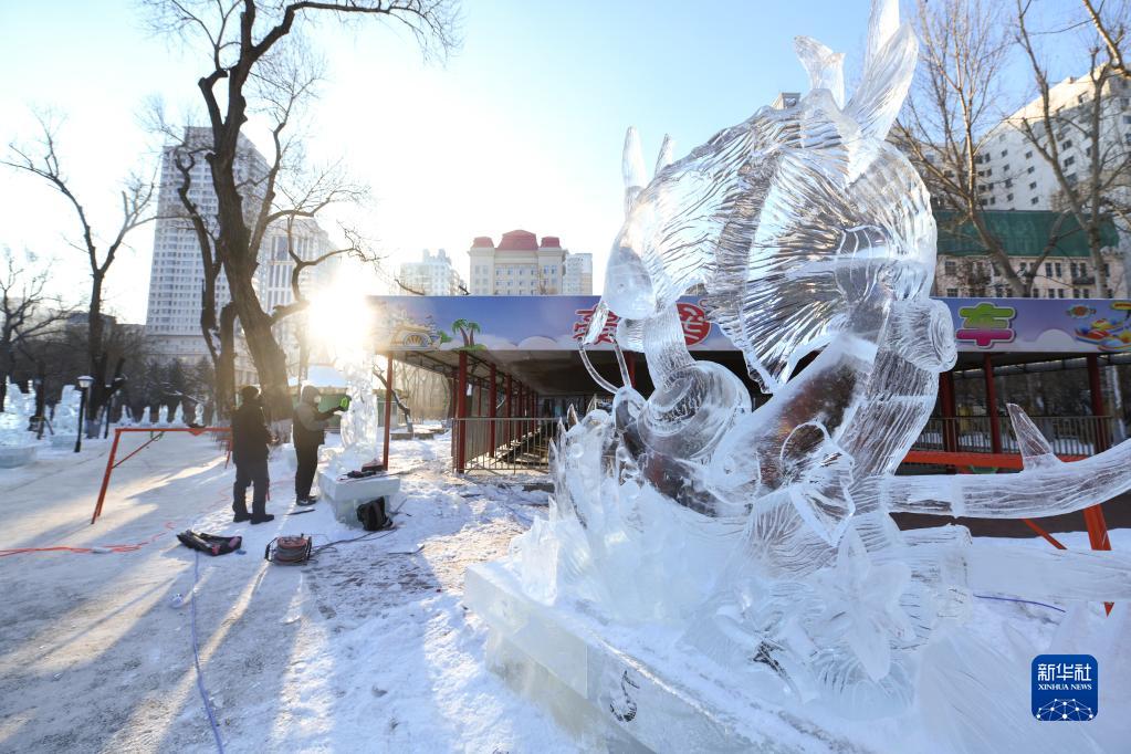 這是獲得最佳技巧獎的冰雕作品《游魚》(1月5日攝)。新華社記者 王松 攝