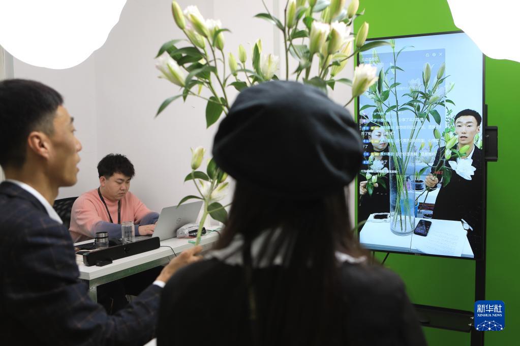 1月5日,在凌源市一家文化傳媒公司,工作人員用網(wǎng)絡(luò)直播的方式推介凌源百合。