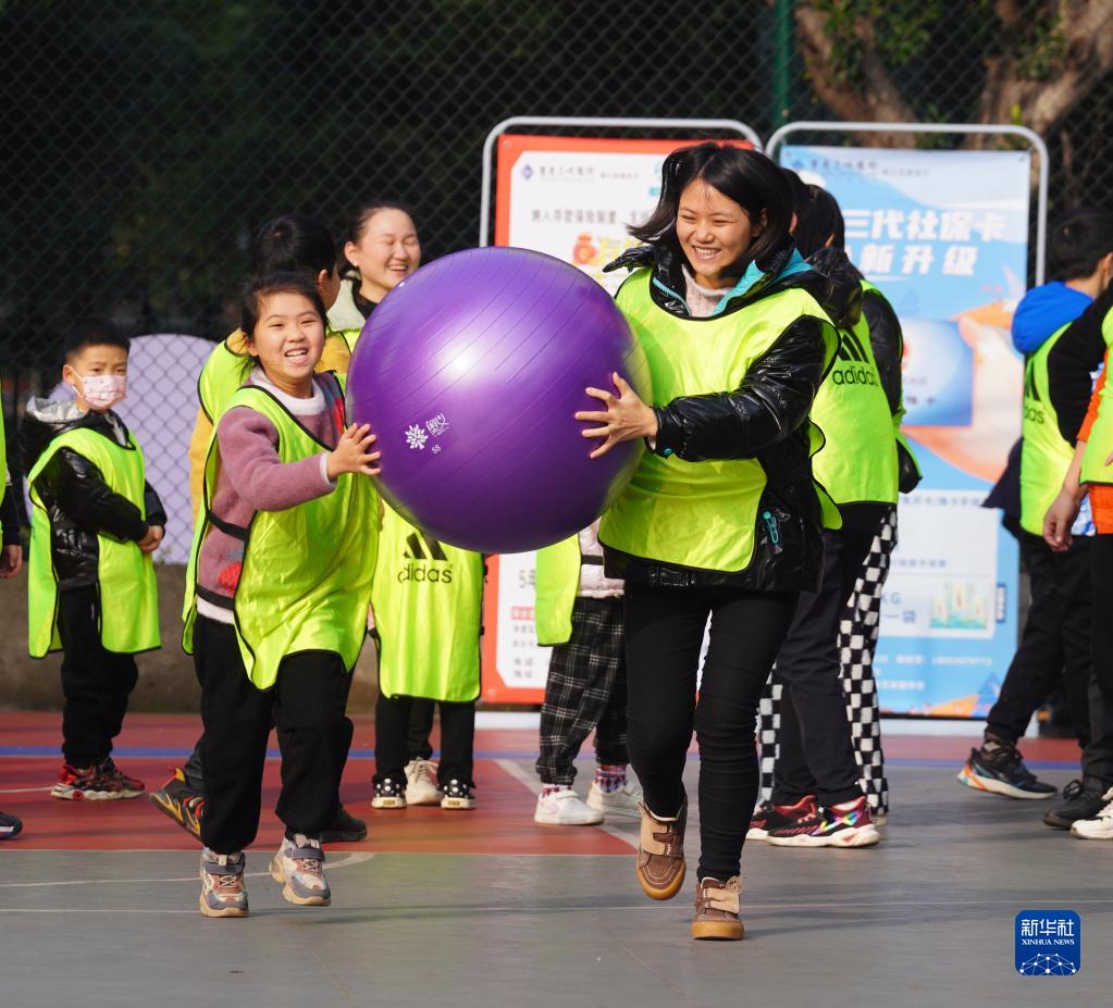 當日,重慶市北碚區兩江名居新時代文明實踐站在兩江名居公租房小區舉行親子趣味運動會,小區內的家長帶著孩子參與“摸石頭過河”“運轉乾坤”“乘風破浪”“萬眾一心”“拔河”等項目的比賽,喜迎新春佳節的到來。