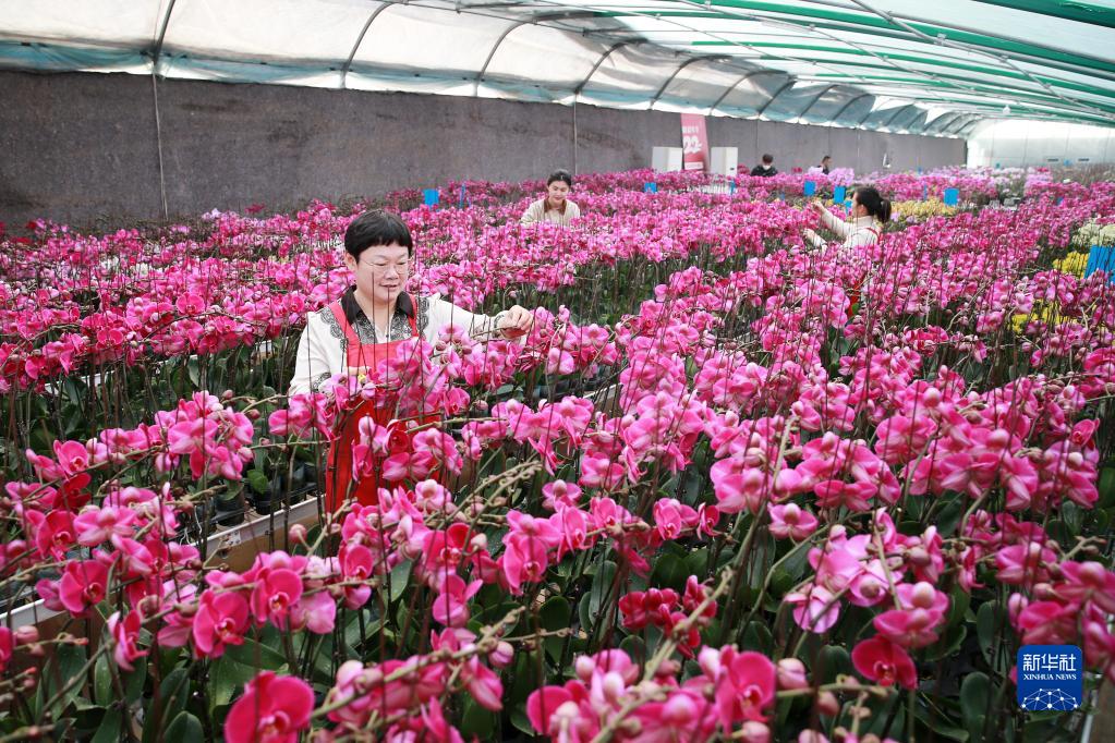 春節臨近,在安徽省淮北市烈山區華家湖社區蝴蝶蘭種植基地智能化溫室大棚內,10萬余株各色蝴蝶蘭競相綻放。工作人員忙著管理、搬運蝴蝶蘭,供應各地節日市場。