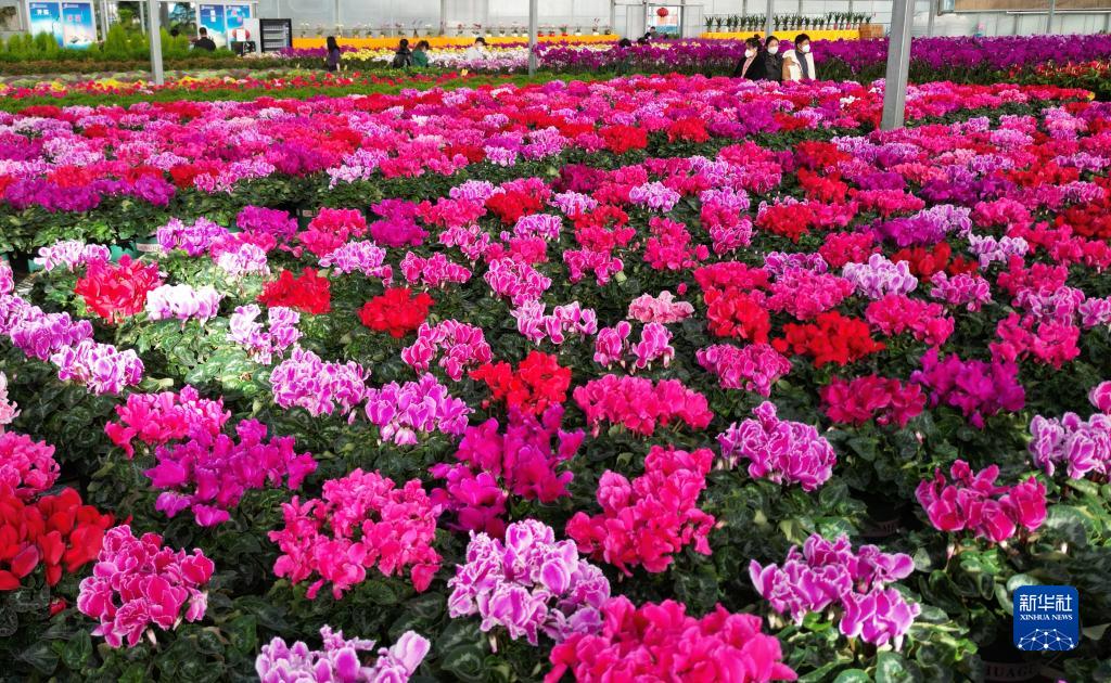春節(jié)臨近,甘肅省臨夏回族自治州鮮花市場(chǎng)迎來(lái)銷售旺季,人們選購(gòu)年宵花卉,迎接新春佳節(jié)的到來(lái)。