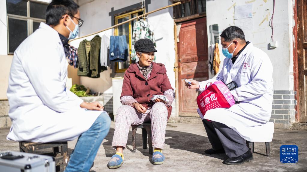 1月6日,醫(yī)務(wù)工作者到六盤水市鐘山區(qū)青林苗族彝族鄉(xiāng)海發(fā)村村民家中巡診送藥。