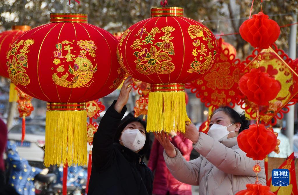 1月6日,市民在河北省邯鄲市永年區一處年貨市場選購節日飾品。