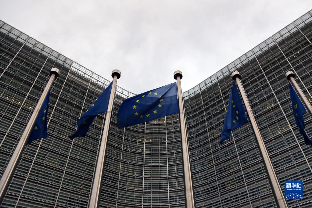 1月6日,歐盟旗幟在比利時布魯塞爾的歐盟委員會大廈外飄揚。