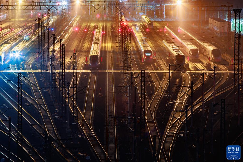 1月7日,2023年春運(yùn)啟動(dòng)。1月6日晚,在中國(guó)鐵路成都局集團(tuán)有限公司貴陽(yáng)北動(dòng)車所,停靠在存車線上的動(dòng)車排列整齊如同一支“陸地艦隊(duì)”。