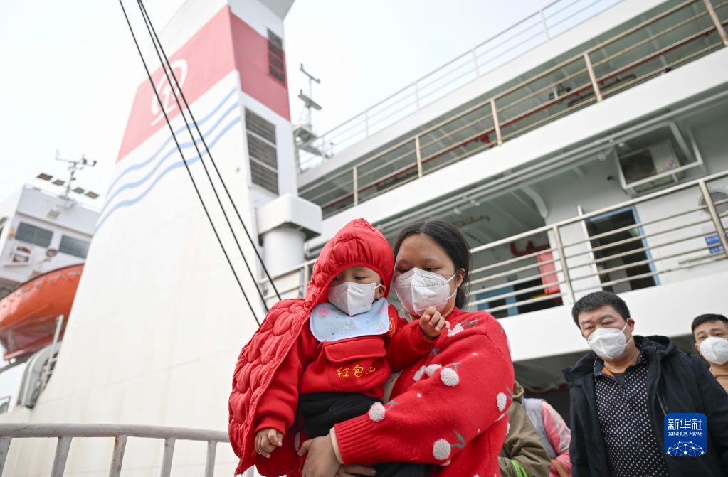 1月7日,在廣東徐聞的粵海鐵路輪渡北港碼頭,粵海鐵1號輪渡上的旅客陸續下船。