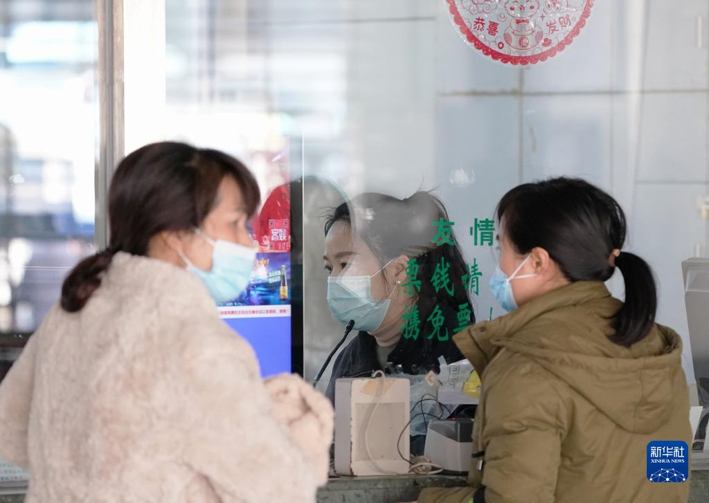 1月7日,在福建福州汽車北站售票大廳,旅客在購買車票。