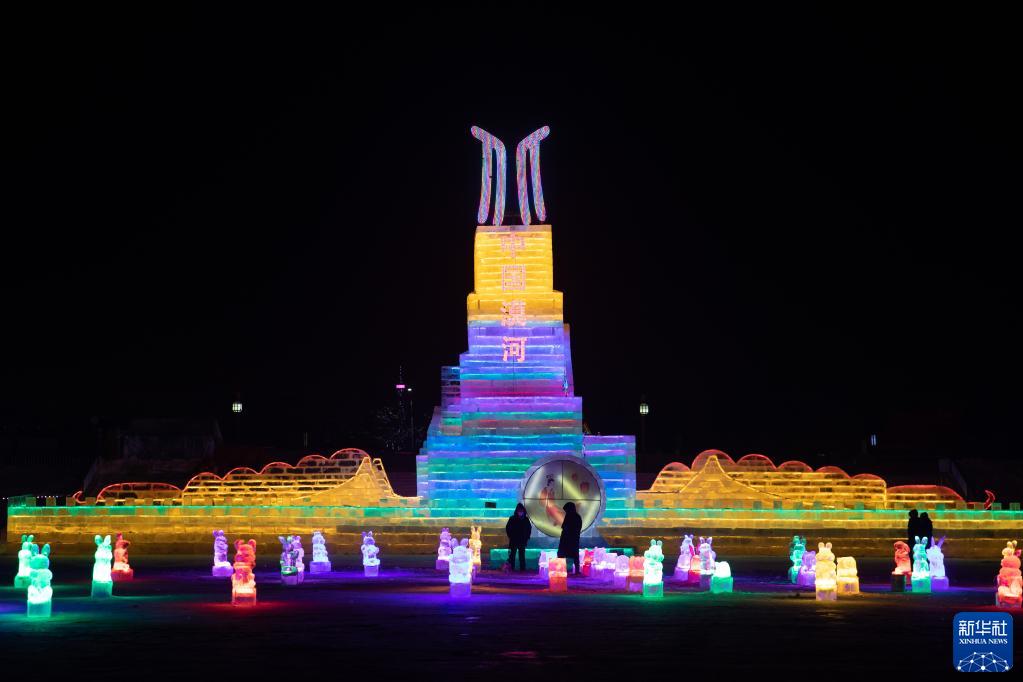 寒夜降臨,市民游客在素有“神州北極”之稱的黑龍江省漠河市體驗別樣的北國之夜。