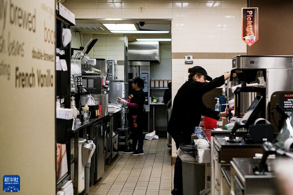 1月6日,美國紐約一家餐廳的工作人員為顧客備餐。