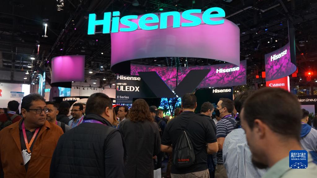 1月6日,人們在美國拉斯維加斯消費電子展上參觀海信展區。