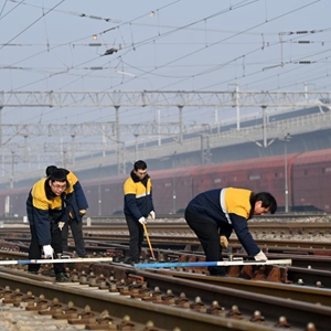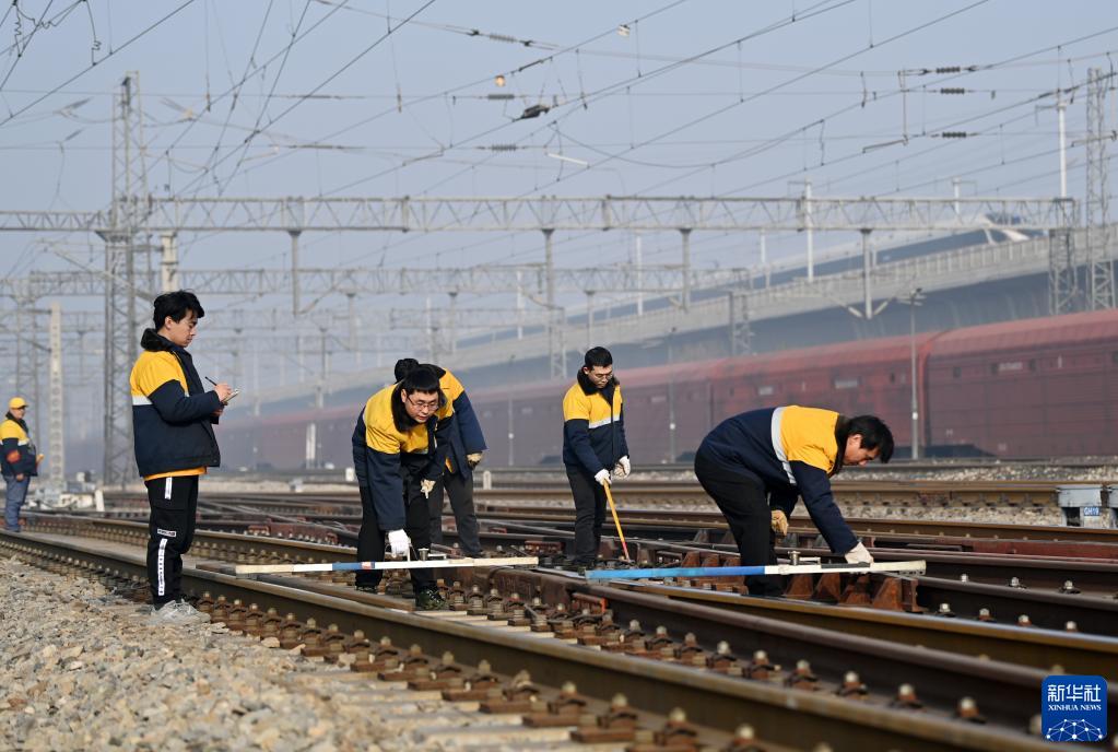1月6日,“大學(xué)生工區(qū)”的職工在天津市北辰區(qū)北倉站內(nèi)進行作業(yè)。