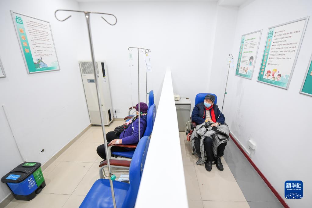 在江蘇省蘇州市姑蘇區(qū)婁江社區(qū)衛(wèi)生服務(wù)中心,居民在輸液區(qū)輸液(1月6日攝)。