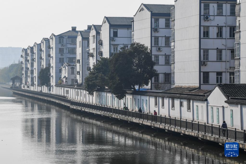 市民在蘇州市姑蘇區二郎巷健康步道行走(1月6日攝)。