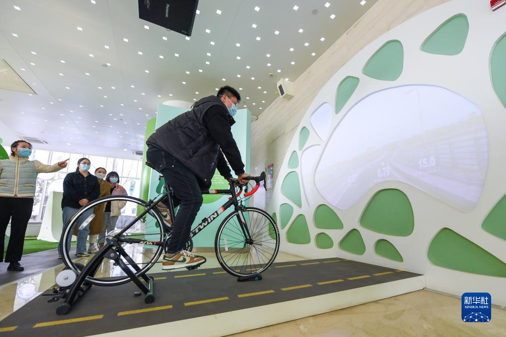 在蘇州工業(yè)園區(qū)公民健康素養(yǎng)教育基地,一位市民在體驗健身游戲(1月6日攝)。
