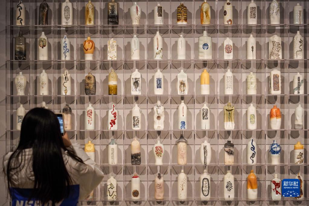 1月7日,觀眾在“2022濟南國際雙年展”上參觀藝術作品《器·形式與過程》。