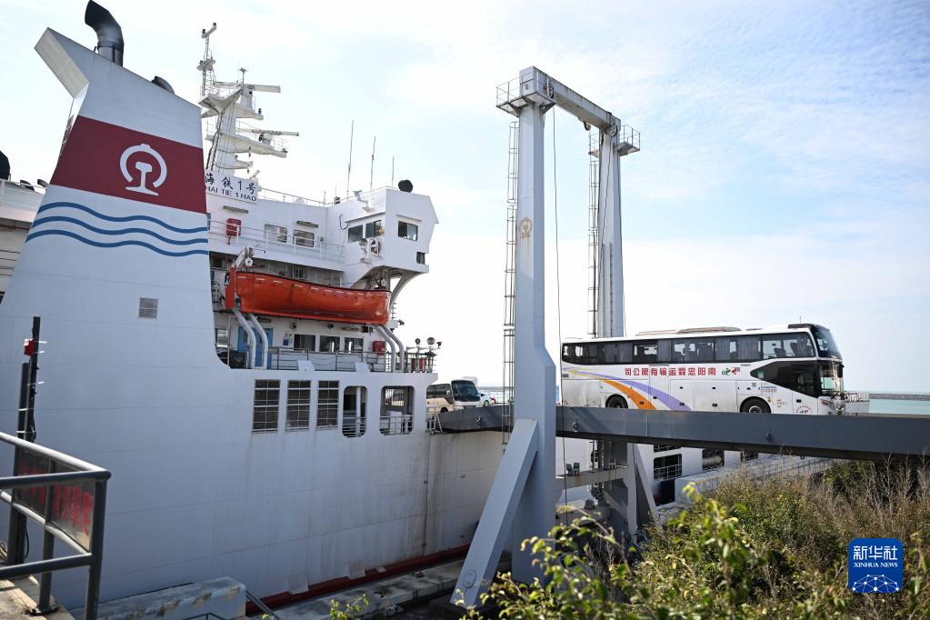 1月6日,在位于海口的粵海鐵路輪渡南港碼頭,車輛駛離粵海鐵1號輪渡。