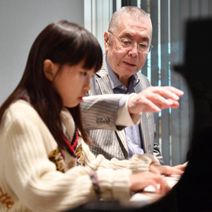 2022年12月9日,鋼琴家劉詩昆在香港銅鑼灣貝樂思鋼琴學院的琴房里指導琴童彈奏。