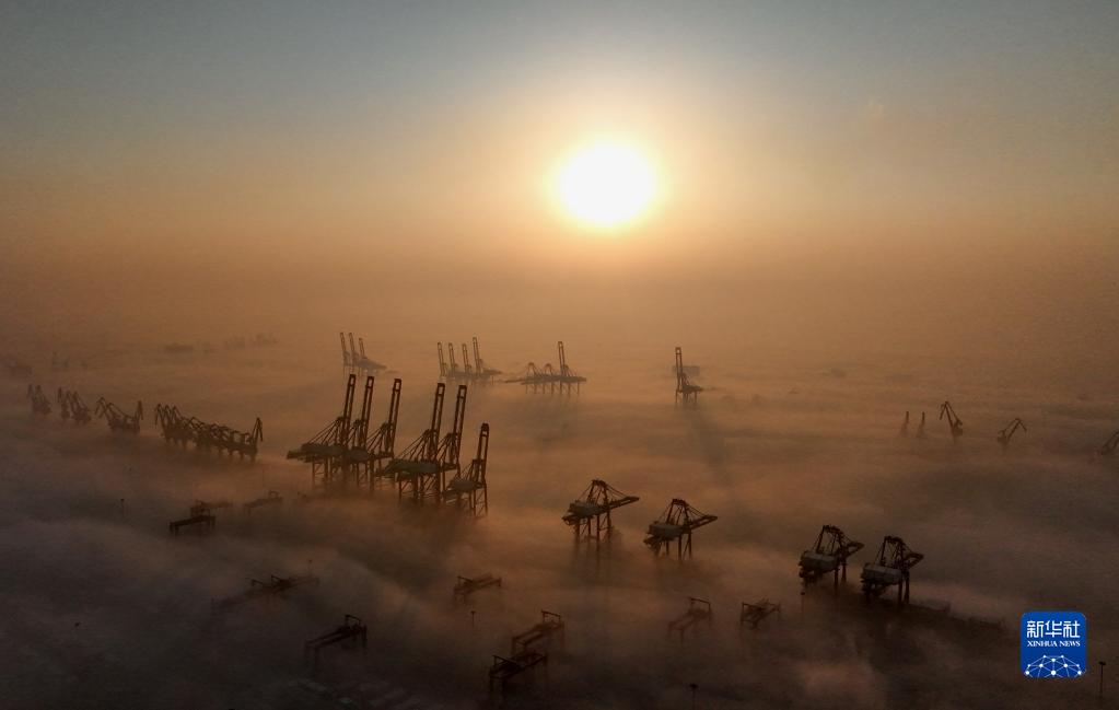 河北省唐山港京唐港區(qū)出現平流霧景觀(2023年1月5日攝,無人機照片)。