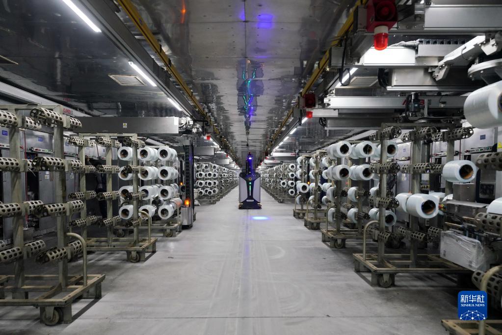 1月6日,智能無人搬運(yùn)車在沙河市一家玻璃產(chǎn)品生產(chǎn)企業(yè)的車間運(yùn)輸玻璃纖維產(chǎn)品。