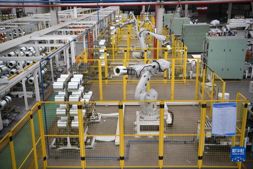 1月6日,機械手臂在沙河市一家玻璃制品生產企業的生產線上工作。
