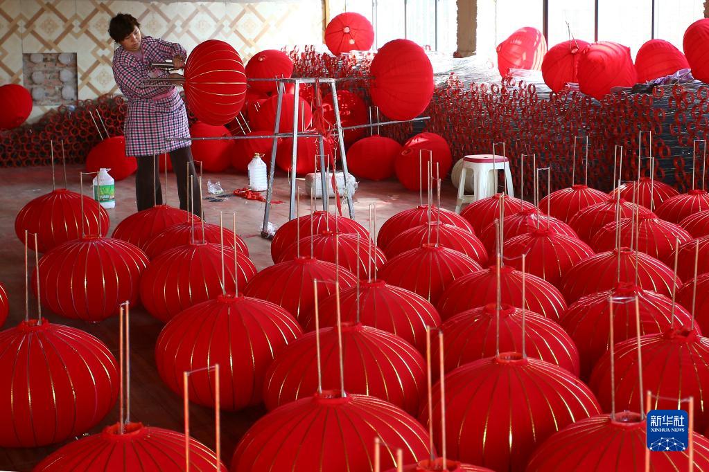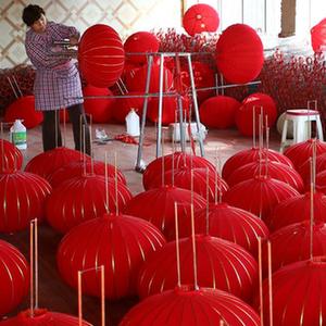 春節臨近,燈籠俏銷,不少地方加緊趕制燈籠,供應節日市場。
