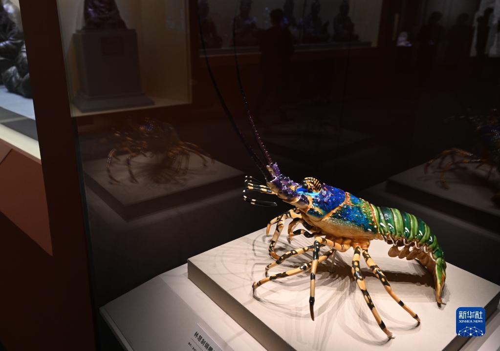 這是展出的錫雕青龍蝦(1月8日攝)。