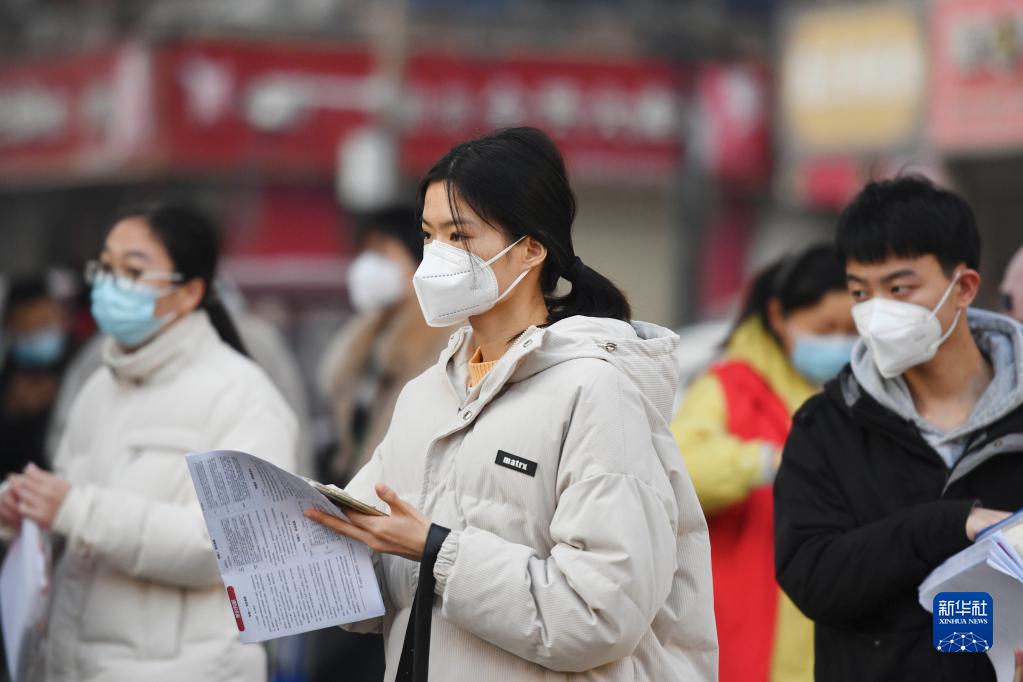 1月7日-8日,中央機關及其直屬機構2023年度考試錄用公務員筆試舉行。這是1月8日,在安徽省阜陽市潁州中學考點,考生入場參加公共科目筆試。