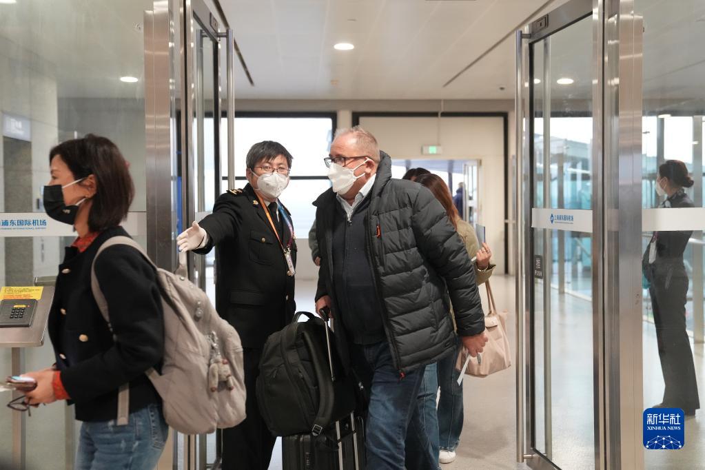 1月8日,入境旅客抵達上海浦東國際機場。