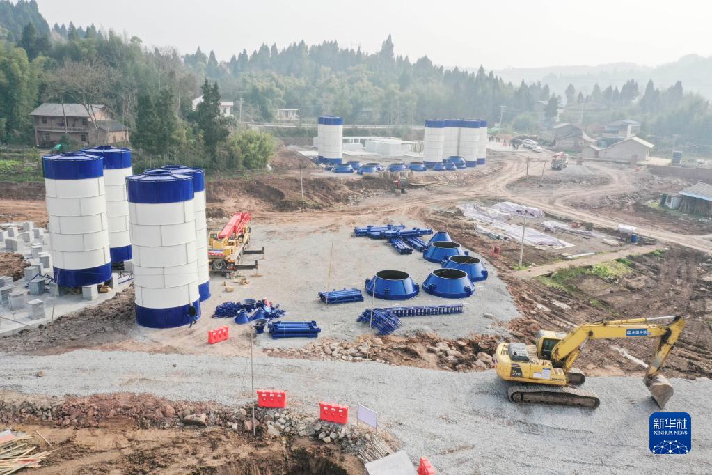 這是1月8日在重慶市大足區境內拍攝的成渝中線高鐵建設施工現場(無人機照片)。
