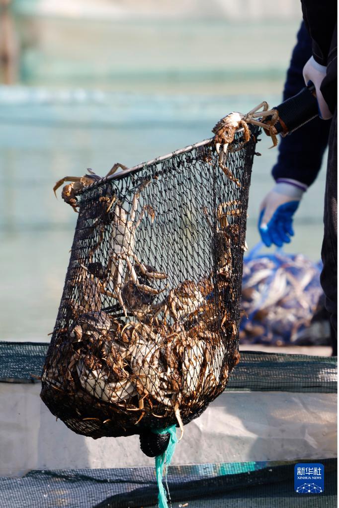 春節臨近,江蘇省宿遷市泗洪縣蟹農養殖的近20萬畝螃蟹迎來銷售旺季,當地養殖戶紛紛忙著捕撈螃蟹供應春節市場。