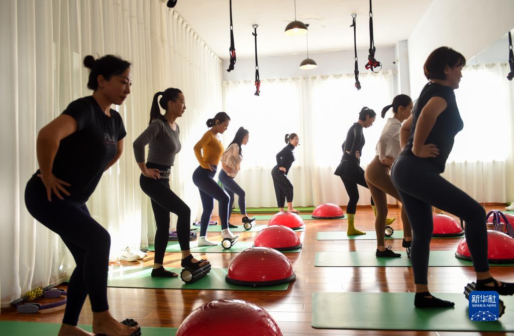 1月8日,人們在西烏珠穆沁旗的一家瑜伽館健身。