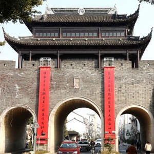 春節(jié)臨近,江蘇省蘇州市閶門、婁門等古城門城墻上掛起巨幅春聯(lián),給古城增添了喜慶祥和的節(jié)日氣氛。新華社發(fā)(杭興微 攝)