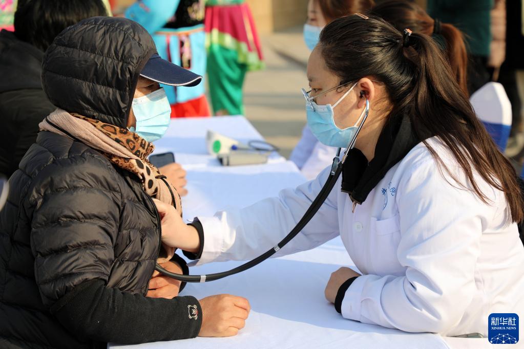 1月10日,石家莊市井陘縣醫院醫務人員在井陘縣南橫口村開展義診活動。