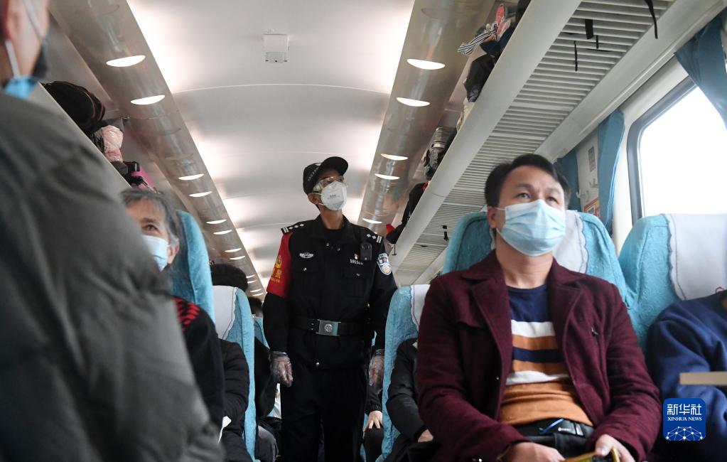 1月10日,覃業民在車廂內巡邏。